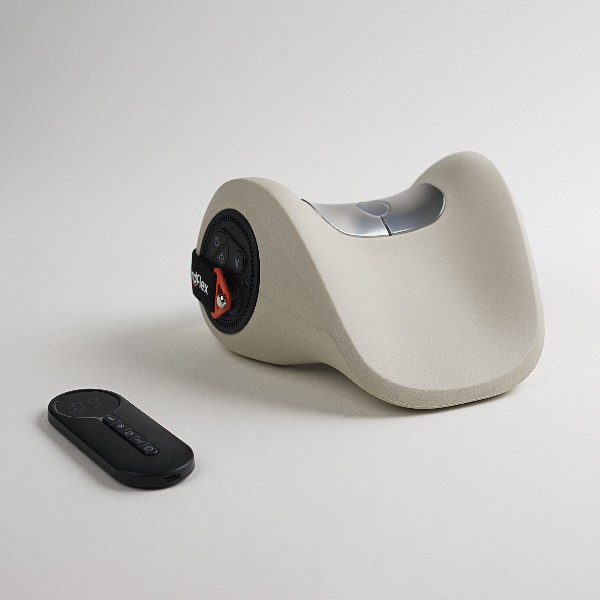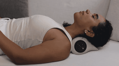The device uses your body's own weight and shapes developed in collaboration with chiropractors to gently decompress your cervical spine.